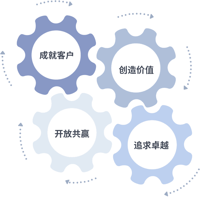 成就客户是一切决策的出发点,,,,创造价值是衡量所有工作的标准,,,追求卓越是Z6·尊龙做事做人的态度,,,,开放共赢是Z6·尊龙的格局也是最终的结果。。。。价值观的齿轮环环相扣,,推动着组织里的每个人不断向前。。